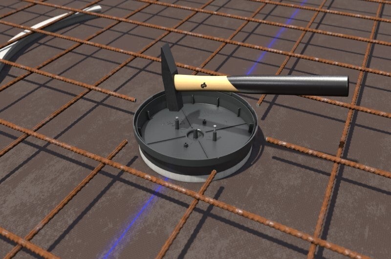 Nach dem Betongießen kann die Fluchtlinie durch gezielte Bohrungen perfekt eingehalten werden. Optional sind auch Frontteile mit festgelegtem Einbaudurchmesser erhältlich, diese werden mit dem Hammer geöffnet.