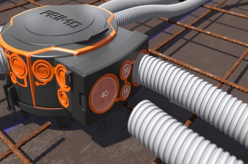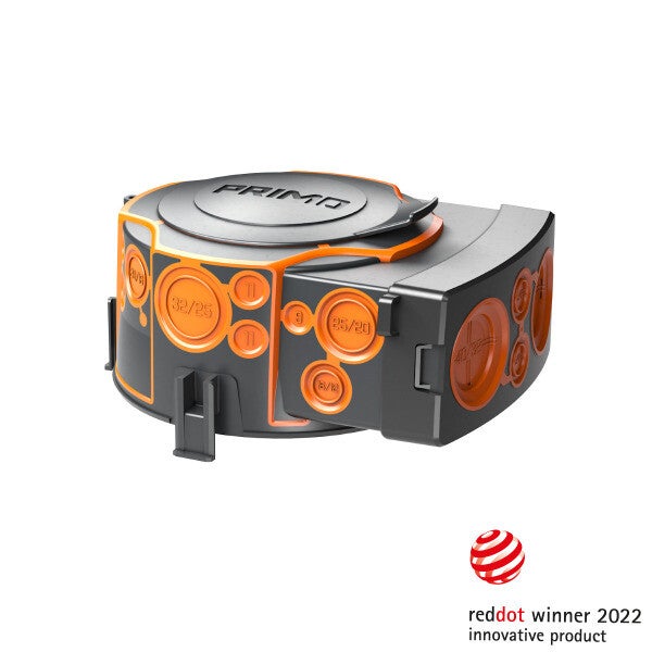 Eine absolut betondichte und sicher zugentlastete Rohreinführung ohne Werkzeug ist für die Rohrgrößen M20, M25, M32 und M40 durch die Primo Membrantechnik möglich. Direkt an der Dose befindet sich ein Mini-Trafo, der durch den Trafotunnel universal P873 um 126 mm erweitert werden kann.